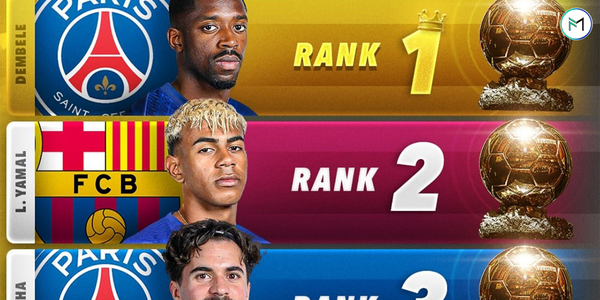 از میان ۱۰۰ فهرست ارائه‌شده، عثمان دمبله در ۷۳ فهرست در رتبه نخست قرار داشت و پس از او لامین یامال، پدیدۀ ۱۸ساله بارسلونا، تنها ۱۱ بار در جایگاه نخست قرار گرفت و در رتبه‌ای پایین‌تر از انتظار ایستاد. به گزارش اکیپ، بدترین رتبه‌ای که یامال دریافت کرد مربوط به خبرنگار مصری بود که او را در رتبۀ نهم فهرست خود قرار داد. در سوی دیگر، رافینیا که امید زیادی به کسب این جایزه داشت، هیچ رأی اولی به دست نیاورد و ناکام ماند.
