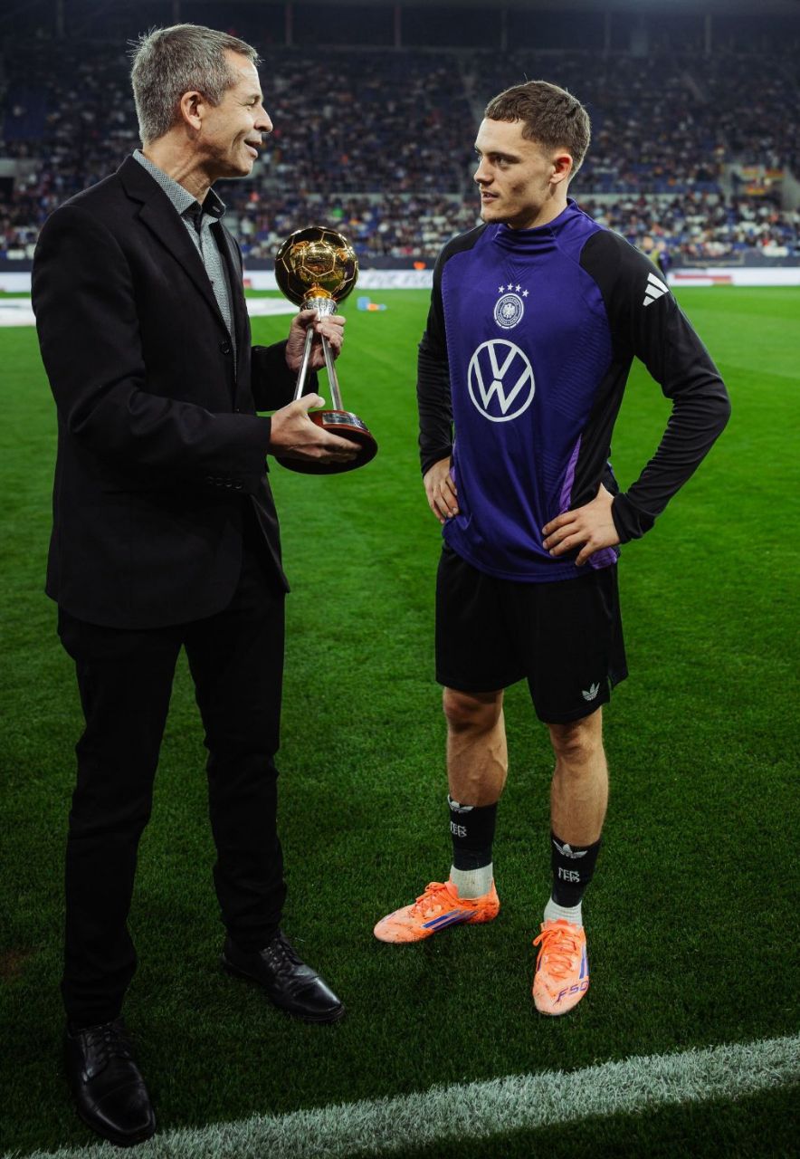 افتخارات و دستاوردهامجله فوتبال: در حاشیهی دیدار آلمان مقابل لوکزامبورگ که با پیروزی ۴-۰ شاگردان یولیان ناگلزمان به پایان رسید، فلوریان ویرتس، جایزهی بهترین فوتبالیست آلمان در سال ۲۰۲۵ که چندی پیش برندهی آن شده بود را بهطور رسمی دریافت کرد.